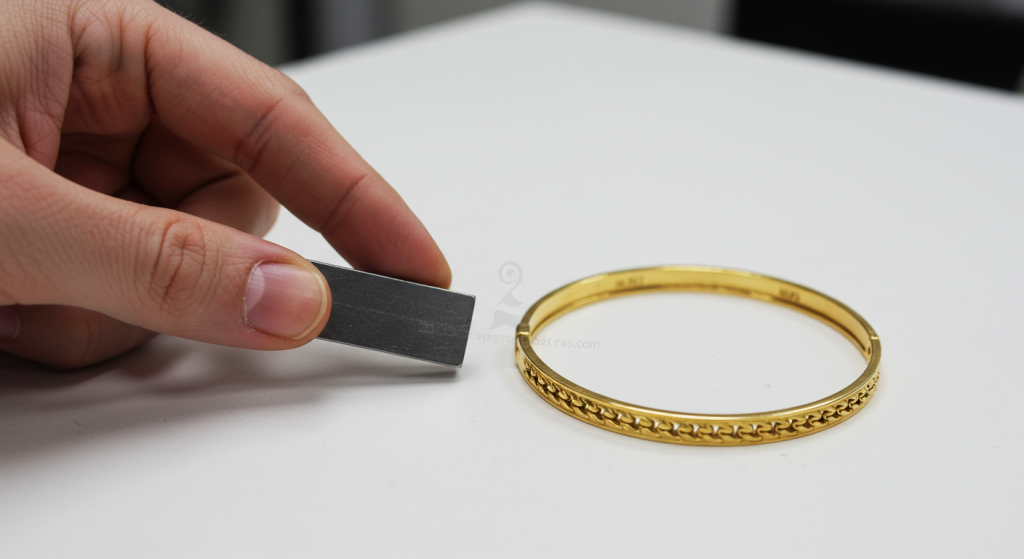 - Dekatkan magnet kepada barang emas anda.